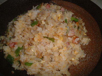 中華ダシの素とこしょうをいれ、まんべなく混ざったら、ごはんを少し寄せる。