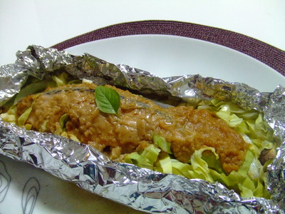 サーモンのホイル焼き味噌バター風味♪