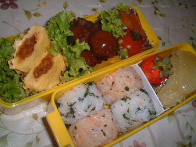 • おにぎり(人参葉ふりかけ)2個(ご飯70g)
