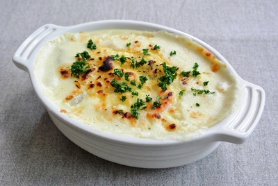 たっぷりの根菜とカニ缶をクリーミーなグラタンに仕上げました。